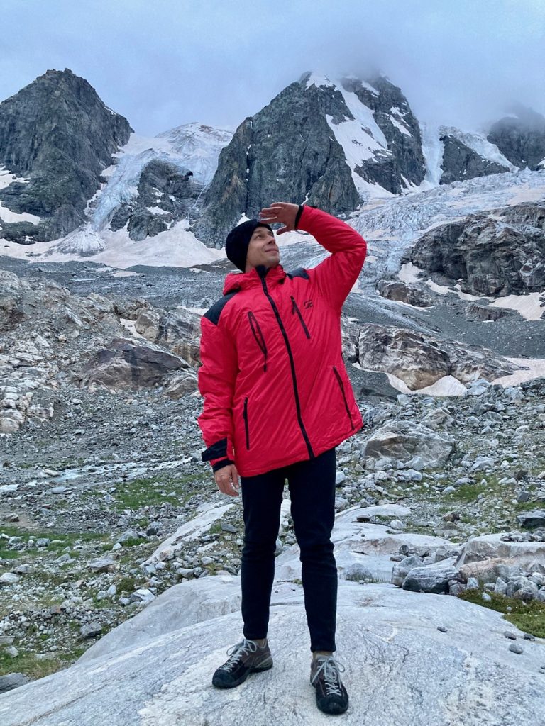 «Первая ночевка была на высоте около 4 200 м, вторая — 4 000 м над уровнем моря. Спали сидя, с двух сторон скалы. Дул сильный ветер, температура минус 10-15 ºC. Куртка позволяла сохранять тепло, в том числе за счет удачного расположения греющих элементов на рукавах и в передней части тела, так как спина обычно защищена рюкзаком или, как в случае с нашей ночевкой, ковриком, прислоненным к скальной породе. До комфортной температуры ткань прогрелась за 40 секунд, заряда аккумулятора хватило на 6 часов непрерывной работы».